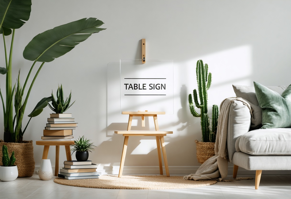 Die Wirkung von Tischaufstellern hängt stark vom Einsatzort ab. Im Wohnzimmer dienen sie als stilvolle Dekoration auf Regalen oder Couchtischen. Hier setzen sie persönliche Akzente und schaffen eine einladende Atmosphäre.